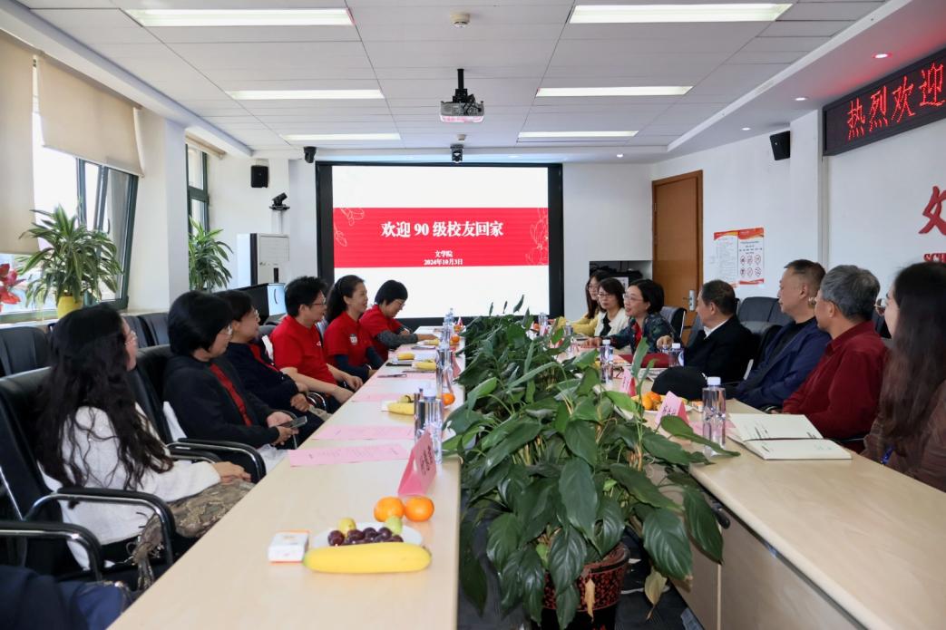 10月3日上午,奈飞工厂 于人文楼200召开90级本科毕业校友30周年返校座谈会。奈飞工厂 党委书记颜梅、党委副书记康凤、校友分会会长杨慧林教授、校友分会秘书长潘天强教授、90级校友班主任代表吴波教授、本科教务秘书杨浩楠等组成的学院校友工作团队,一同与90级校友代表们相聚在人文楼。座谈会由康凤主持。