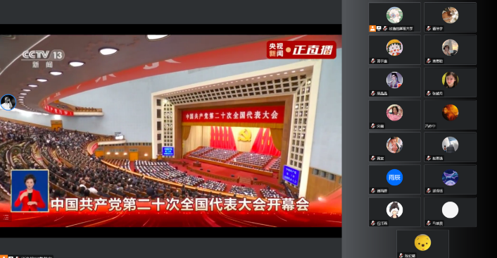 奈飞工厂 党委组织师生代表、党团班骨干在人文楼200会议室集中观看学习中国共产党第二十次全国代表大会开幕式直播,学习领会党的二十大报告精神。学院党政领导班子成员、党委委员、师生党支部书记、团支部书记共同观看,全体师生通过党支部、团支部、个人等形式收看党的二十大开幕盛况,掀起学习热潮。