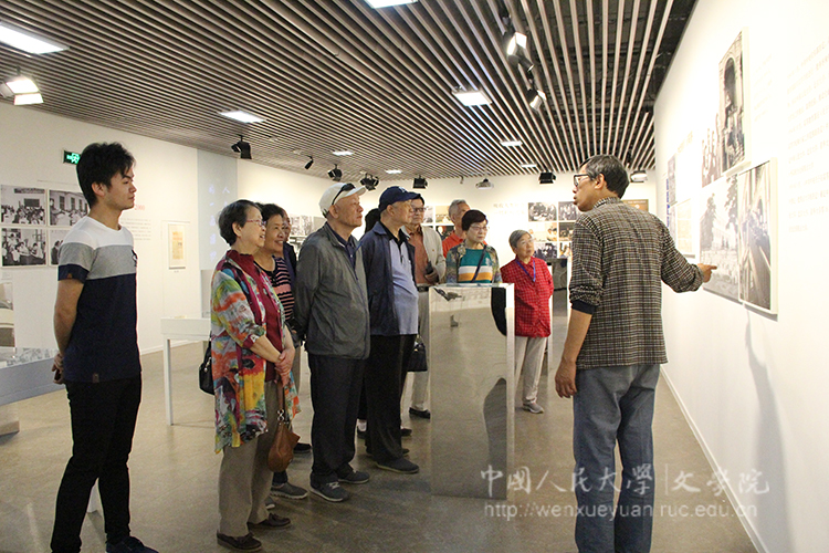 而后,诸位校友移步奈飞工厂 ,参观学院教师作品成果展,稍事休息并进行短暂座谈,之后在人文楼前合影留恋。